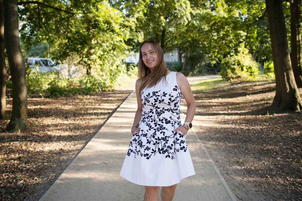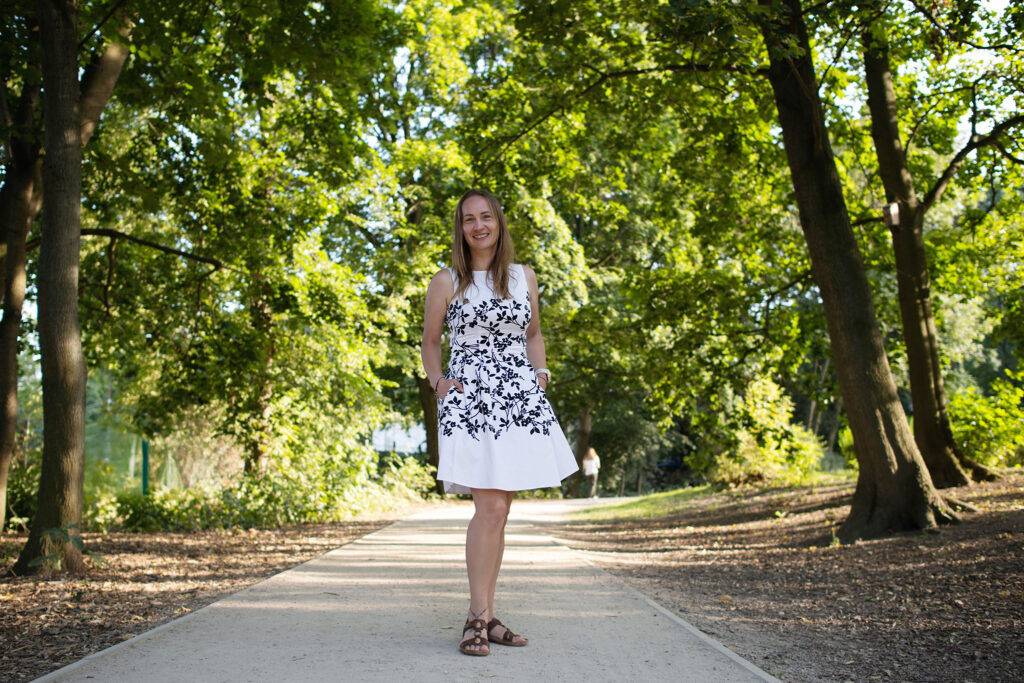 Dwa pierwsze dni przeznaczyłam na spacery, zwiedzanie okolic i leżenie na trawie. Kolejne dwa – na spotkania. Jedno było zawodowe, z klientką. Godzina minęła nam tak szybko, że nawet nie zauważyłam kiedy. Drugie spotkanie – z Dorotą Prus ta od korekty (tak ją znajdziecie na LinkedIn). Wzięłam koc, marchewki (których Dorota odmówiła) i ruszyłyśmy nad jeziorko Kamionkowskie.