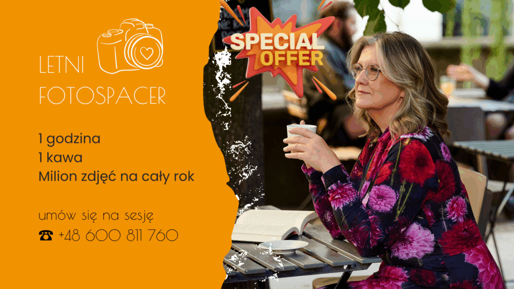 Dla ratowania budżetu zrobiłam promocję na sesje zdjęciowe: Letnia sesja miejska. Spacerujemy po mieście – Ty opowiadasz, ja słucham… i fotografuję. Nie musisz pozować, spinać się. Jesteś sobą, w swoim tempie, w swoim rytmie, w swoim świetle.
